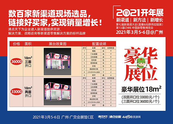 由沸点天下、沸点会展、4458货源网联合举办的“2021第七届新渠道大会(社群与直播供应链展)、第13届CNRE中国新零售博览会”将定于2021年3月5日-6日移师在广交会展馆联袂召开。