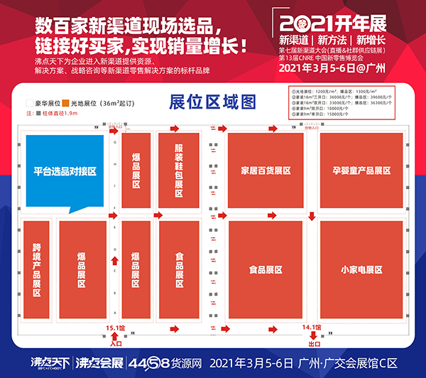 由沸点天下、沸点会展、万团会、4458联合举办的2021食品零食开年展暨社群团购与网红直播选品对接会,“2021第七届新渠道大会(社群与直播供应链展)、第13届CNRE中国新零售博览会”将定于2021年3月5日-6日移师在广交会展馆召开。