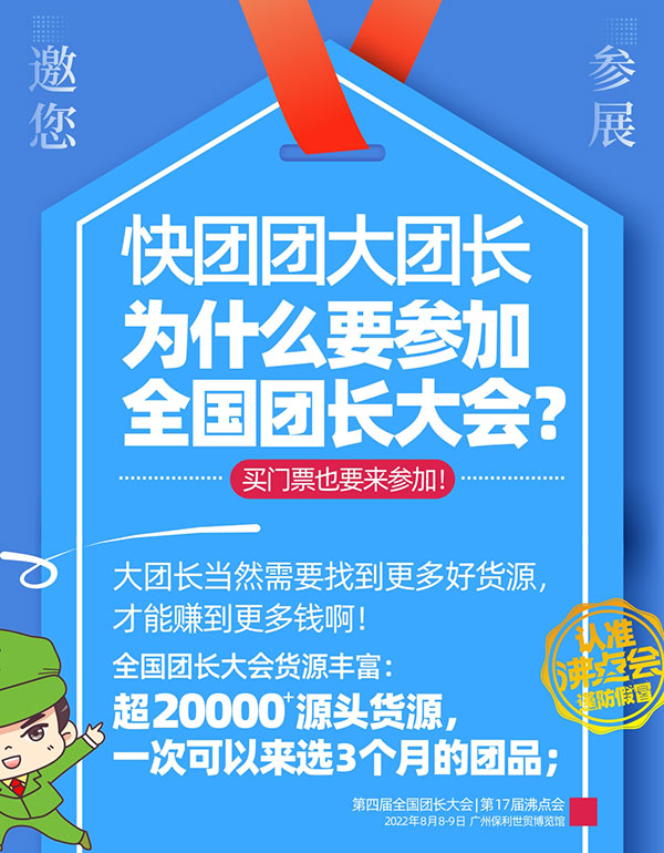8月8广州第4届全国团长大会,超1000+快团团团长&社群团购平台都会来现场选品,如果你想要链接他们,赶紧来!1个展位,对接上千个销售渠道!8月8,广州!