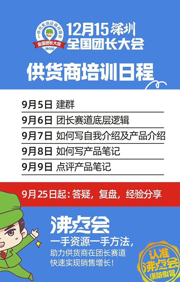 8月8广州全国团长大会后,又有很多新的伙伴通过这场活动了解到我们,也有很多供货商想要快速的进入到团长赛道,询问有没有近期就可以参加的活动。