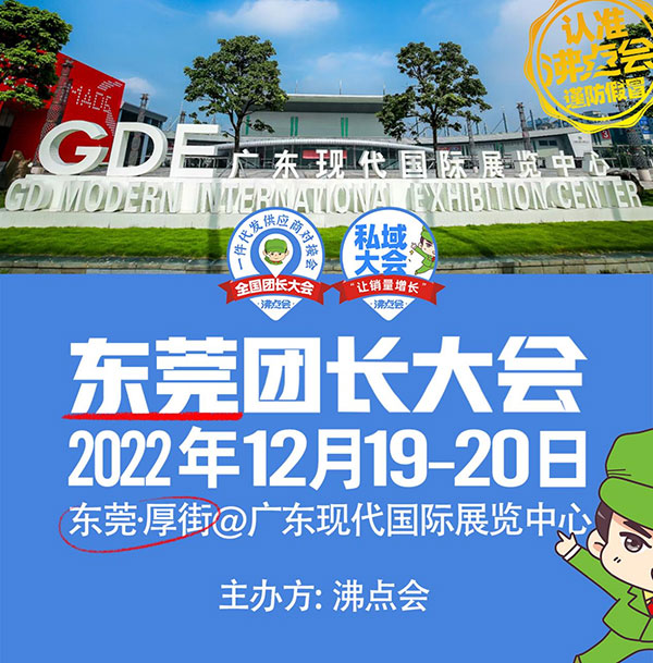 从全国团长大会主办方沸点会了解到,2022私域电商的收官之作,第五届全国团长大会将于12月19-20日在东莞厚街的广东现代国际会展中心举办。